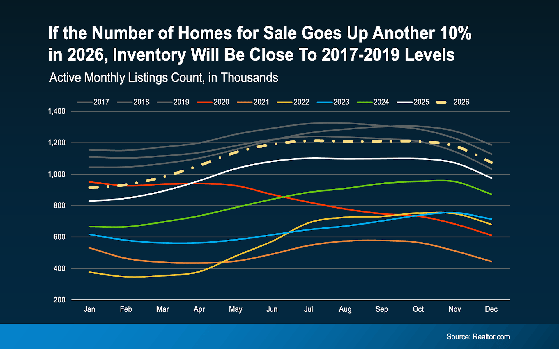 The forecasts for the remainder of 2026 are optimistic. Experts suggest the number of homes for sale could rise another 10% this year, which would bring many more markets back to a healthy supply level.