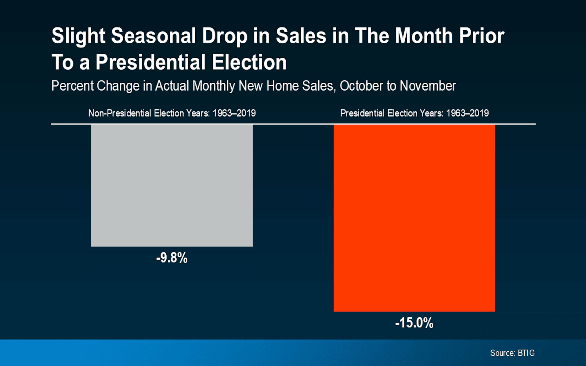 The month before a Presidential election (October to November) usually sees a slight dip in home sales (see graph below):